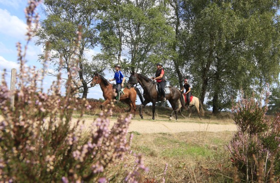 As a result, several routes have been created, allowing riders to take a ride through the National Park. At the intersection Raalterweg/Koordesweg there is a starting point for riders with three parking places with space for car and trailer, two paddocks and a water point. There are special equestrian routes that are part of Paardrijnetwerk Twente. You ride from junction to junction by simply putting together your route. The junction system consists of marked equestrian routes (a total of 500 kilometers). The Forestry Commission also has various equestrian routes on The Sallandse Heuvelrug. Want to saddle your horse and enjoy a snack and a drink on the adjacent terrace? On the Holterbergplein there is a special paddock accessible from the Oude Hellendoornseweg.